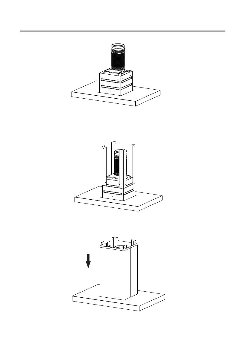 3. Monte a chaminé decorativa inferior e a chaminé decorativa superior no conjunto do corpo do