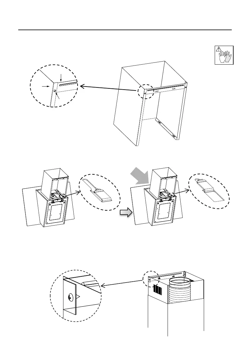 Slightly widen the two sides of the flue and hook them onto the hood body, making sure that