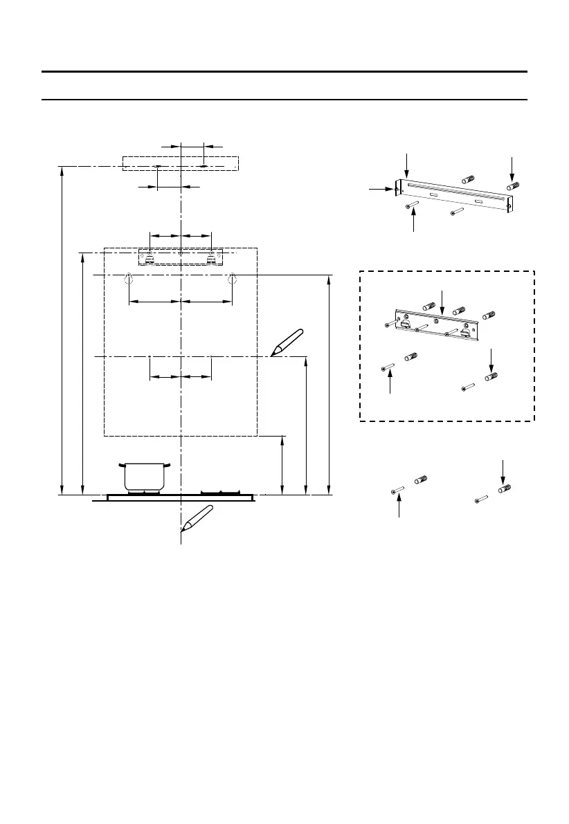 A horizontal line C at a minimum 656 mm above the cooker top.