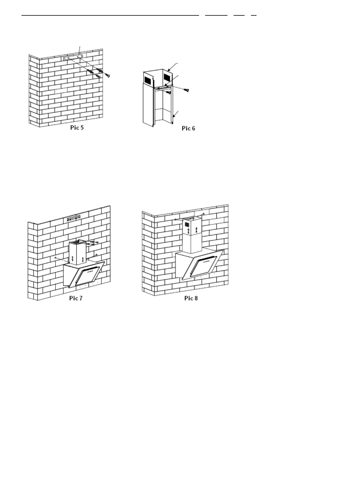 10. Fije las chimeneas en la campana extractora: Utilice 2 tornillos ST4*8mm para jar el soporte de la