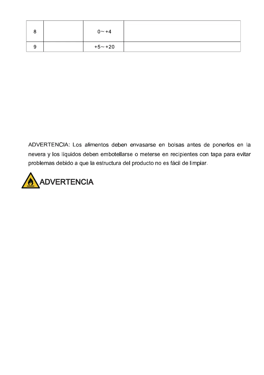 Nota: almacene los diferentes alimentos según compartimentos o la temperatura de