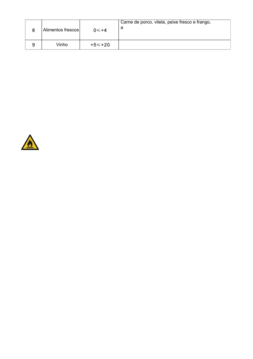 Nota: Armazene diferentes alimentos de acordo com os compartimentos ou a