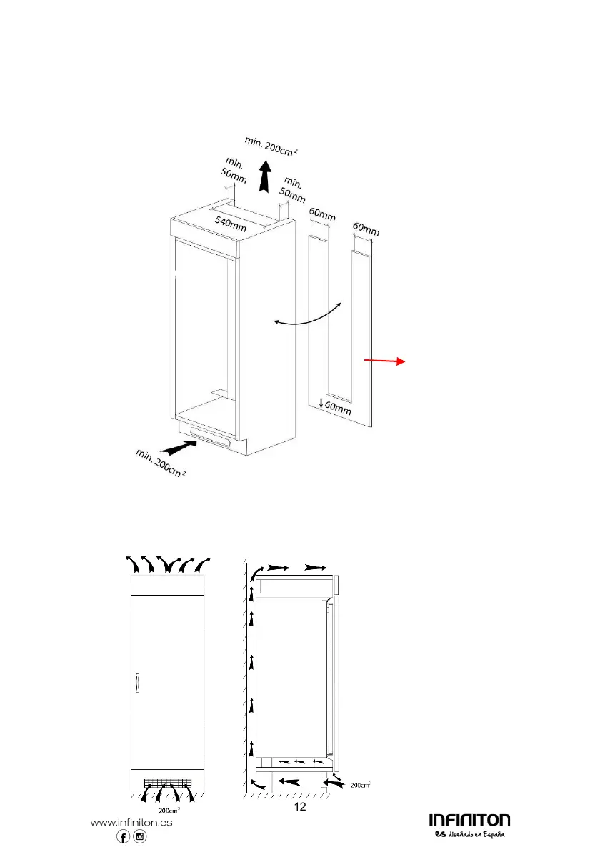 ventilação de (W)540 x (D)50mm.