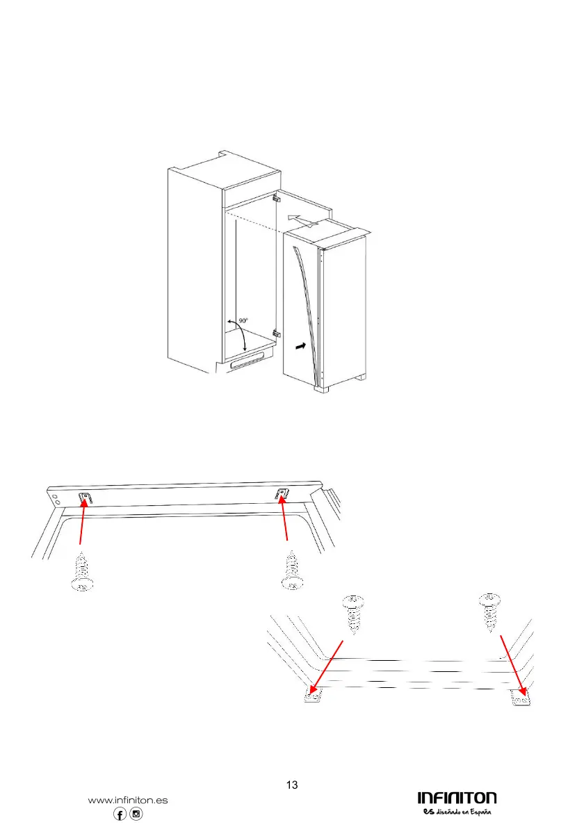 parede do armário. Fixar o aparelho em dois lugares, 2 parafusos torx no rodapé