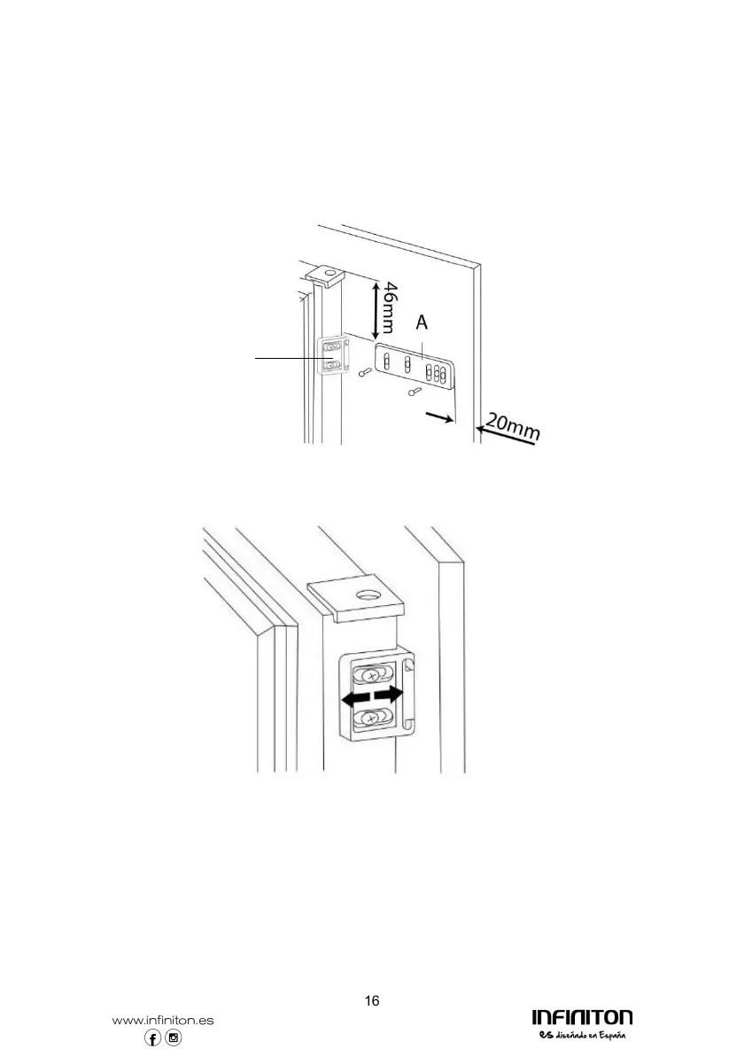A). Empurrar a porta do aparelho e a porta do armário, alinhar os furos no suporte da