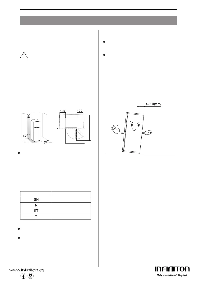 escarcha. Coloque el aparato alejado