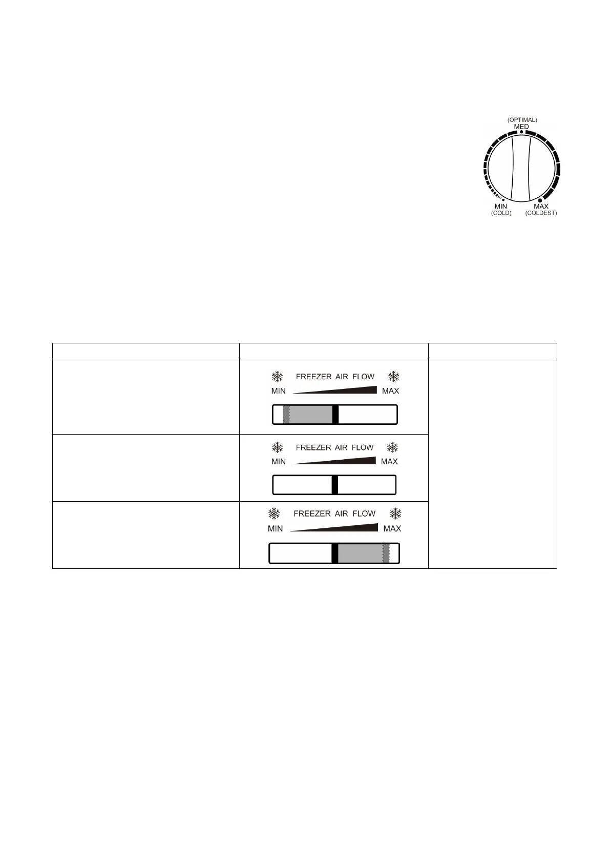 cambios, la temperatura del congelador disminuye gradualmente a medida que el control deslizante del FLUJO DE AIRE
