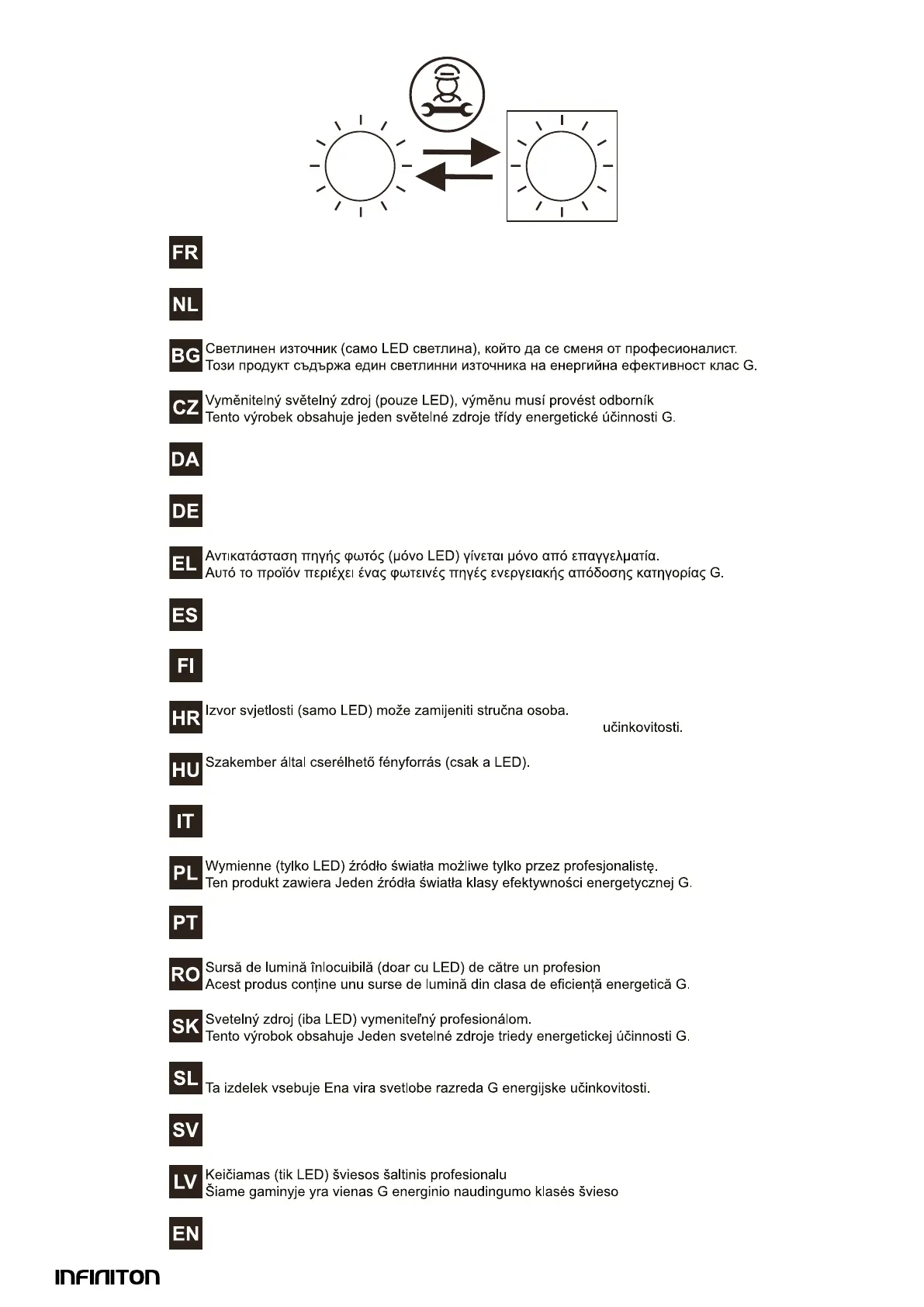 Ez a termék Egy G energiahatékonysági osztályú fényforrást tartalmaz.
