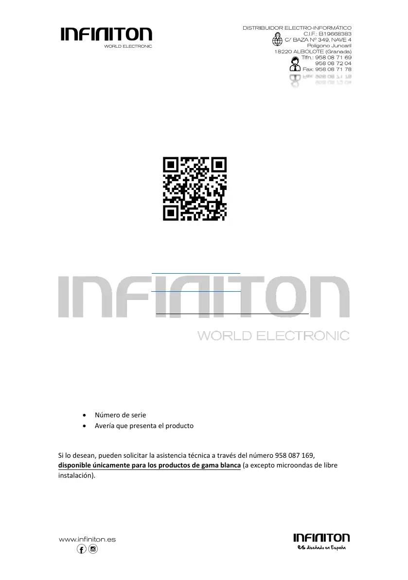 Estimados clientes, para solicitar la asistencia técnica o reparación de su producto Infiniton,