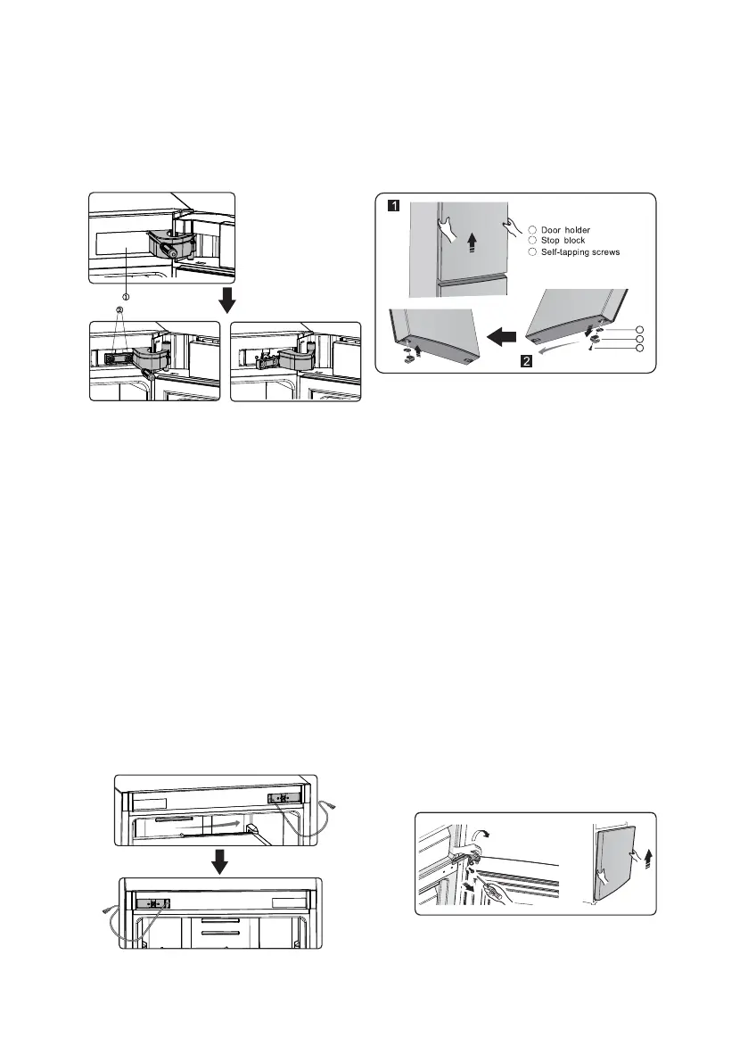 3. Remova a peça ① e os parafusos ②. Coloque-