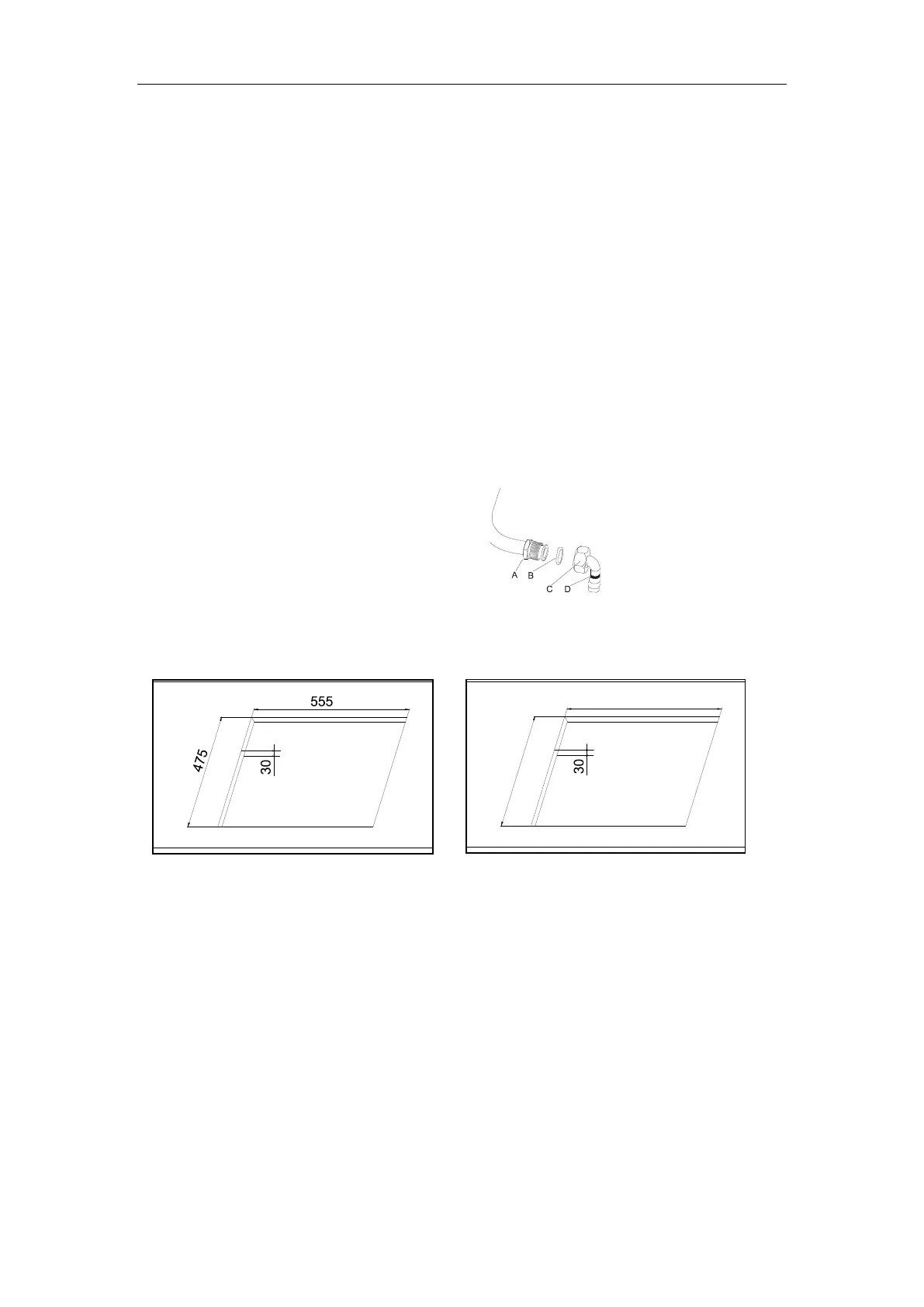 madeira; no caso de uma superfície de gabinete comum, lembre-se de deixar um espaço de pelo menos 45 x 560 mm