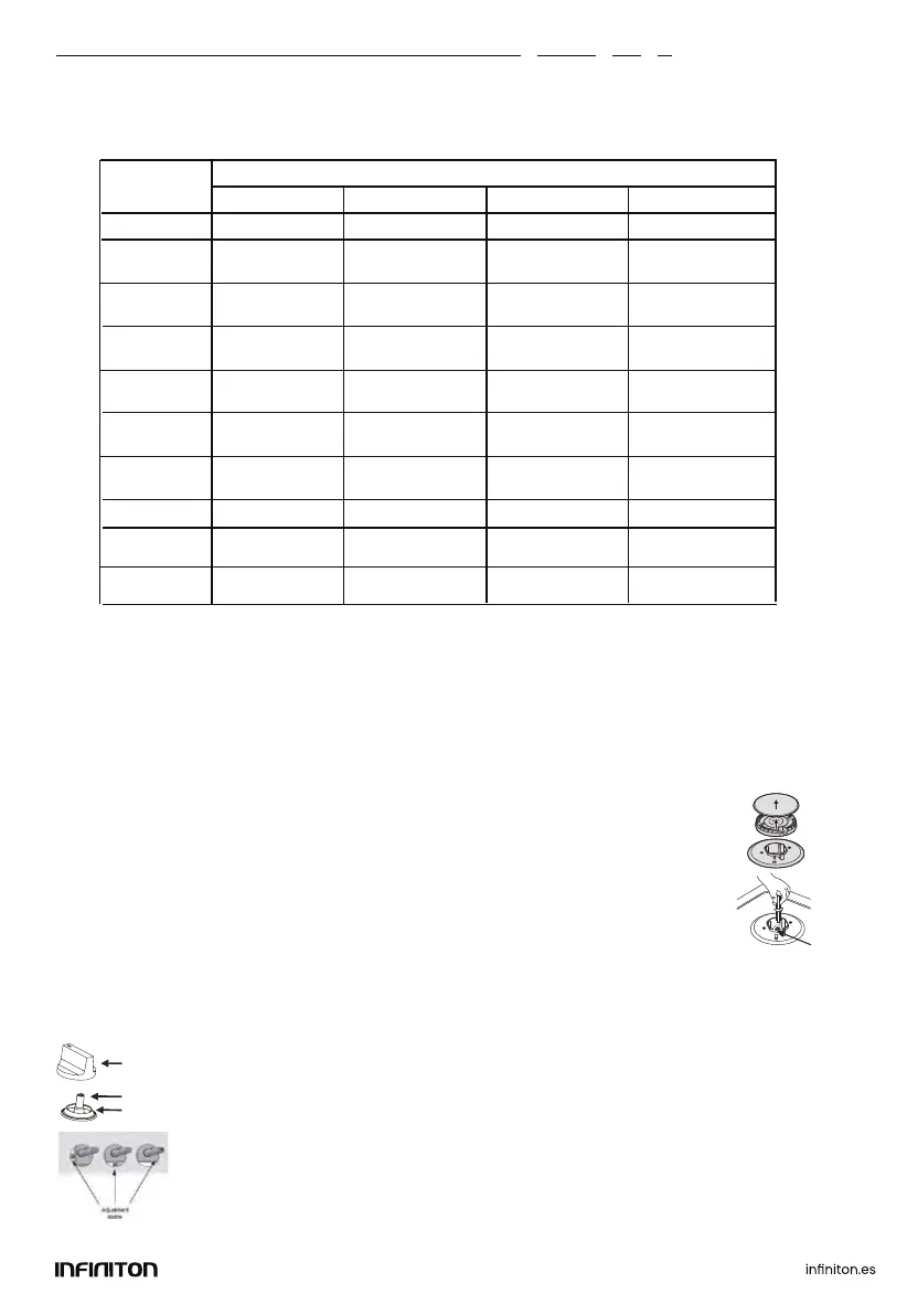 * Para el gas butano/propano, el ajuste del tornillo debe estar