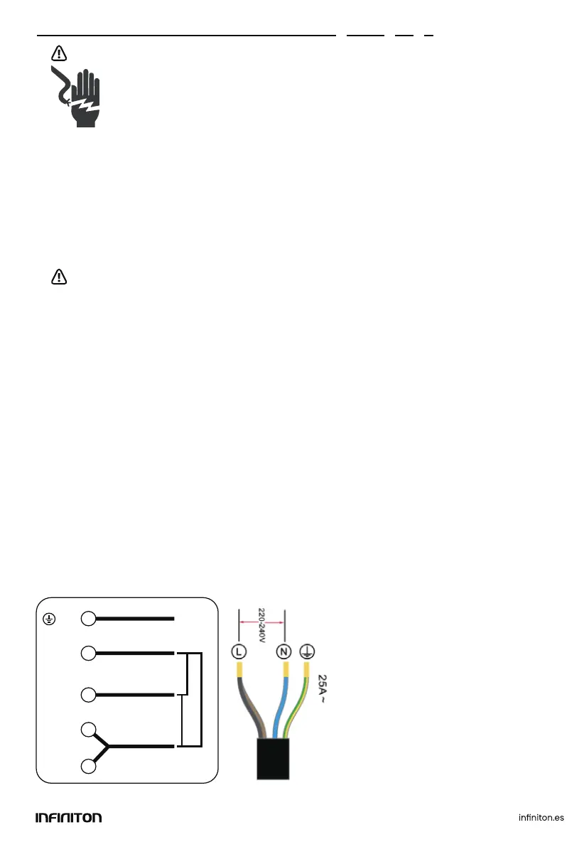 muerte o una descarga eléctrica. La instalación eléctrica y de las tuberías debe
