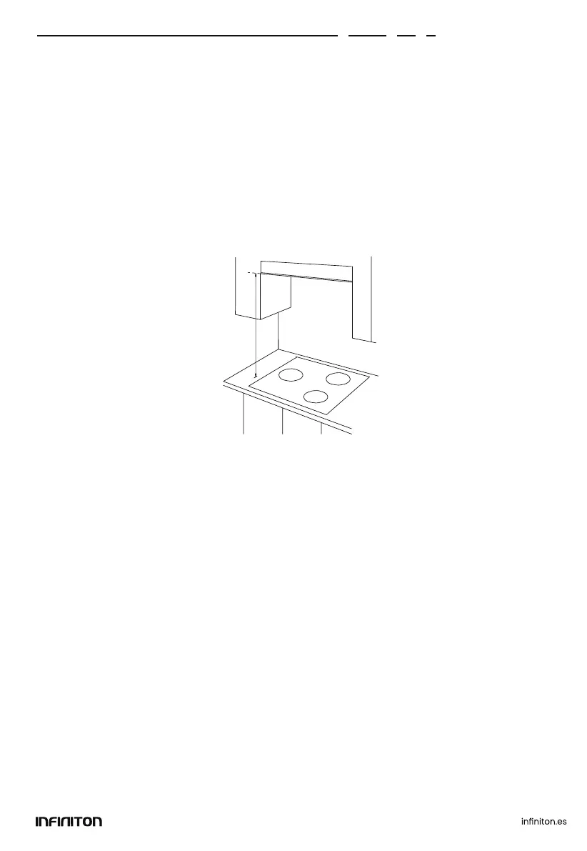 extracción por normal general será entre 55cm - 65cm para las placas vitrocerámica o de inducción.