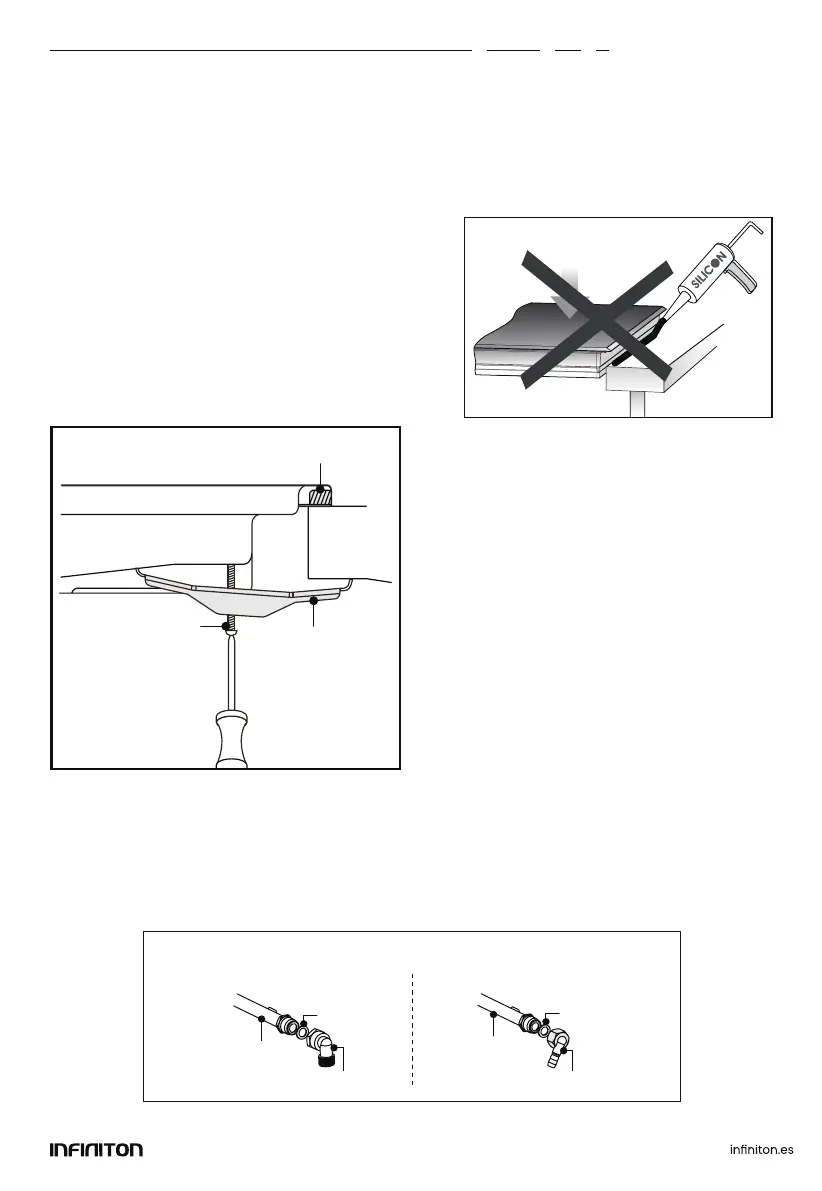 On the underside of the hob, adjust the