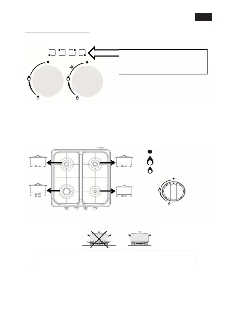 1: Push and turn anticlockwise the gas stove switch to bring to high flame.