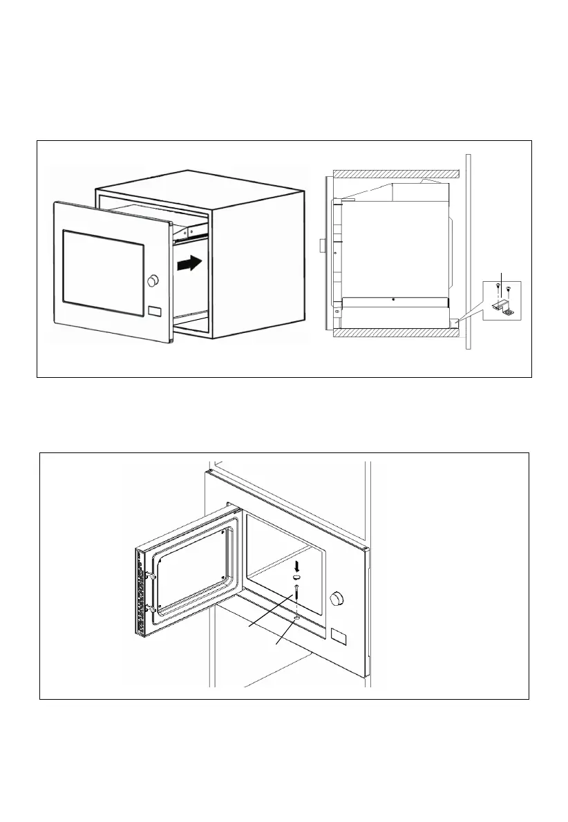 5. Open the door, fix the oven to the cabinet with Screw B, at the installation hole.