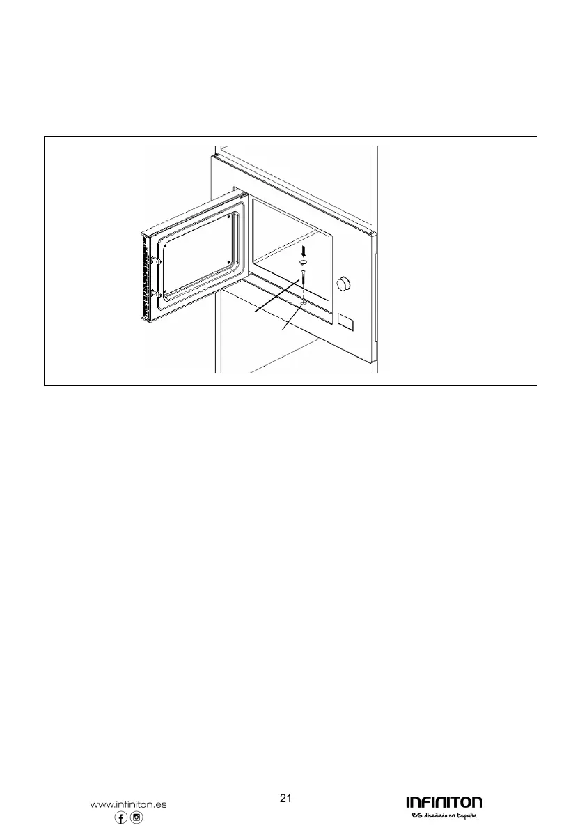 Abra la puerta, fije el horno al mueble con el tornillo B, en el agujero de
