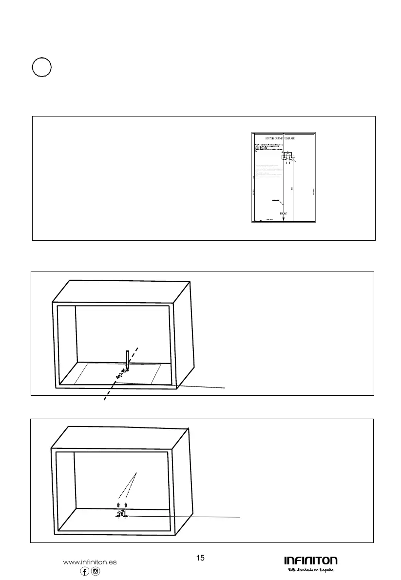 Remove the bottom cabinet template and fix the mounting plate with screw A.