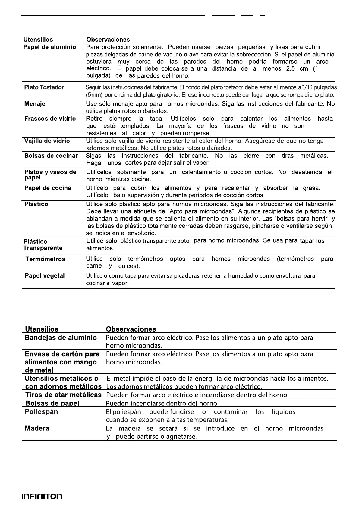 Materiales que se pueden utilizar en el microondas