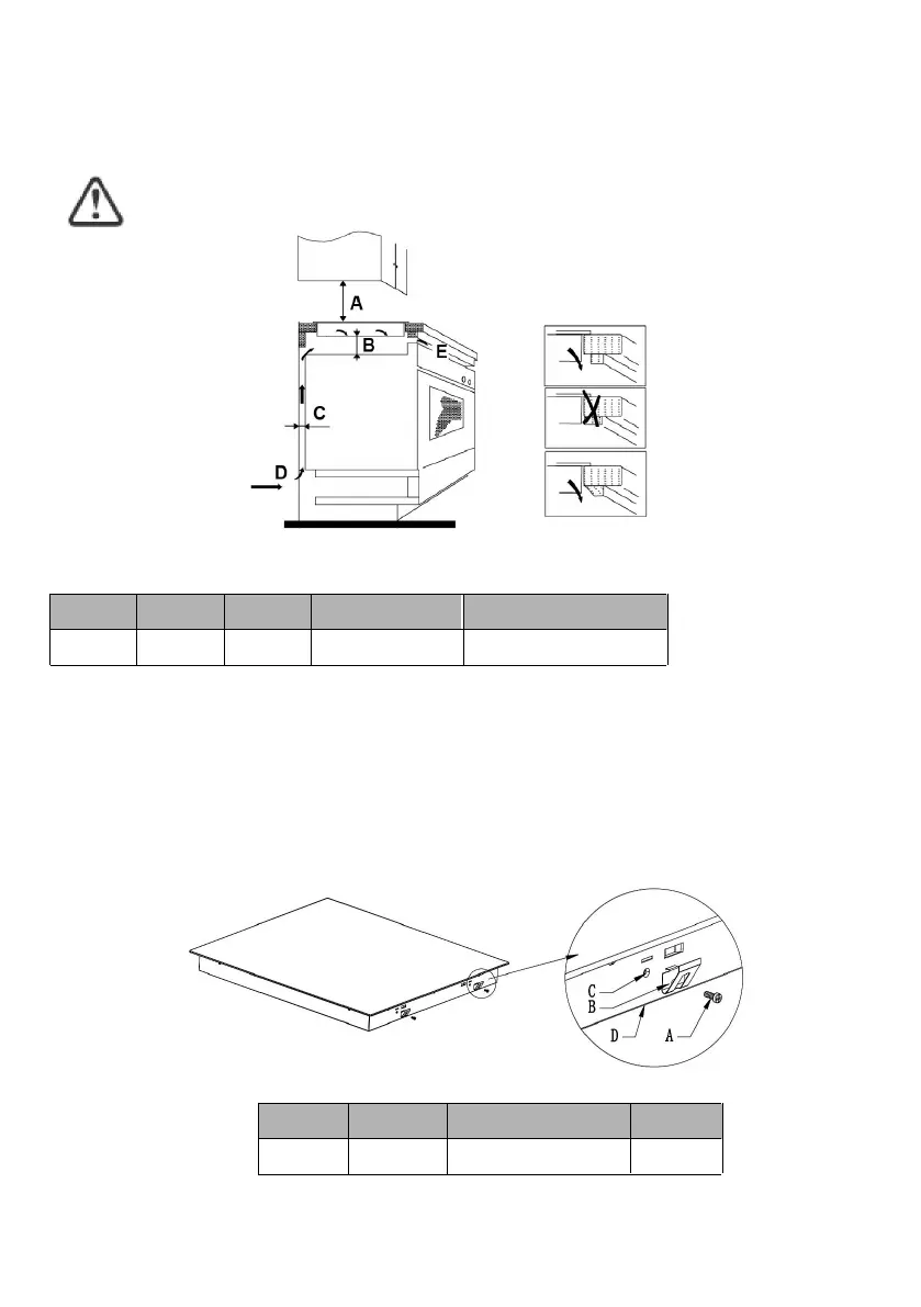 Nota: La distancia de seguridad entre la vitrocerámica y cualquier posible