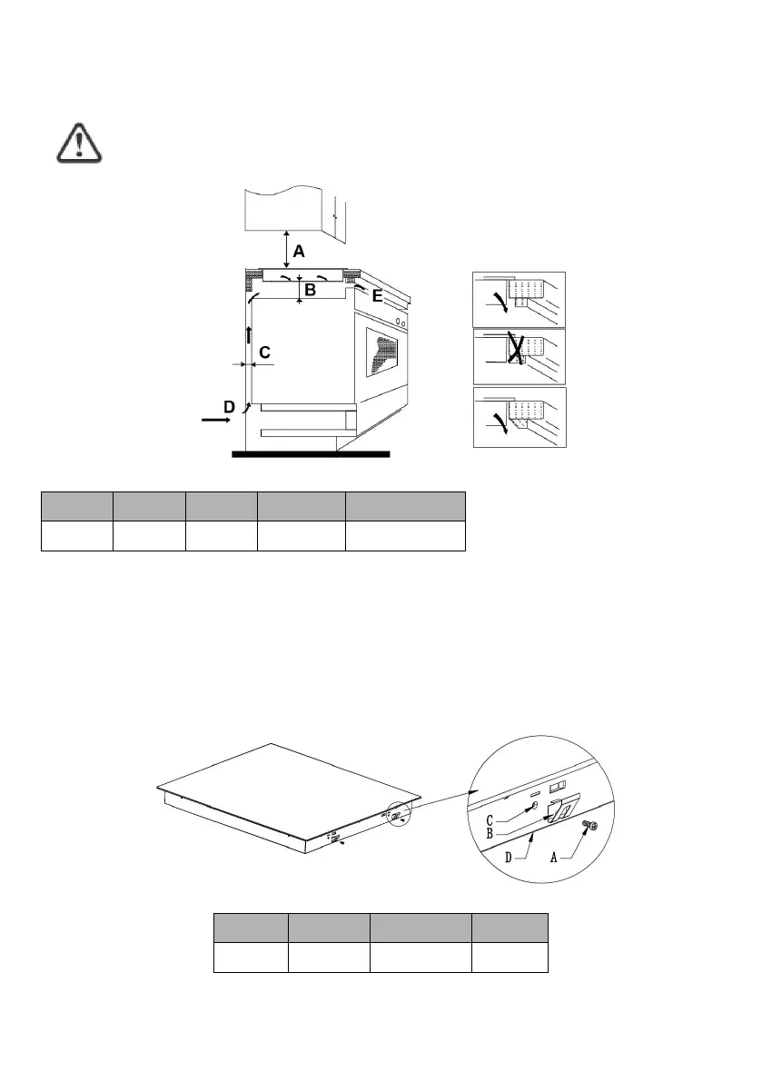 Nota: A distância de segurança entre o vidro cerâmico e qualquer