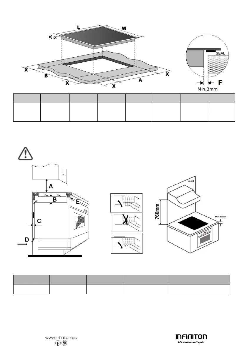 Nota: A distância de segurança entre a placa de aquecimento e o armário