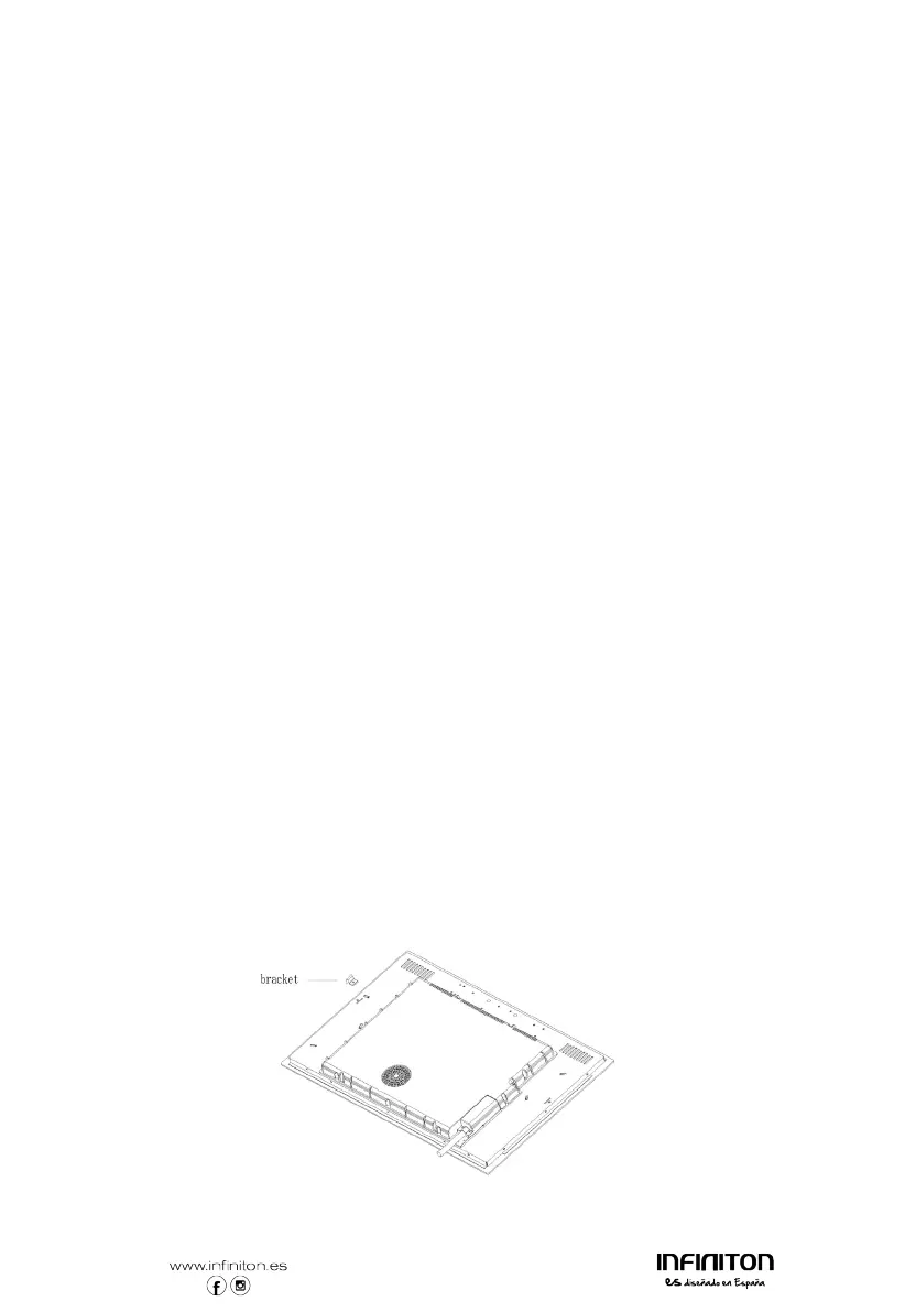 • Se a placa for instalada por cima de uma gaveta ou armário, é instalada uma