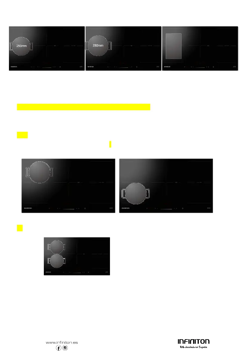 (b) Coloque dos cacerolas a ambos lados de la zona flexible.