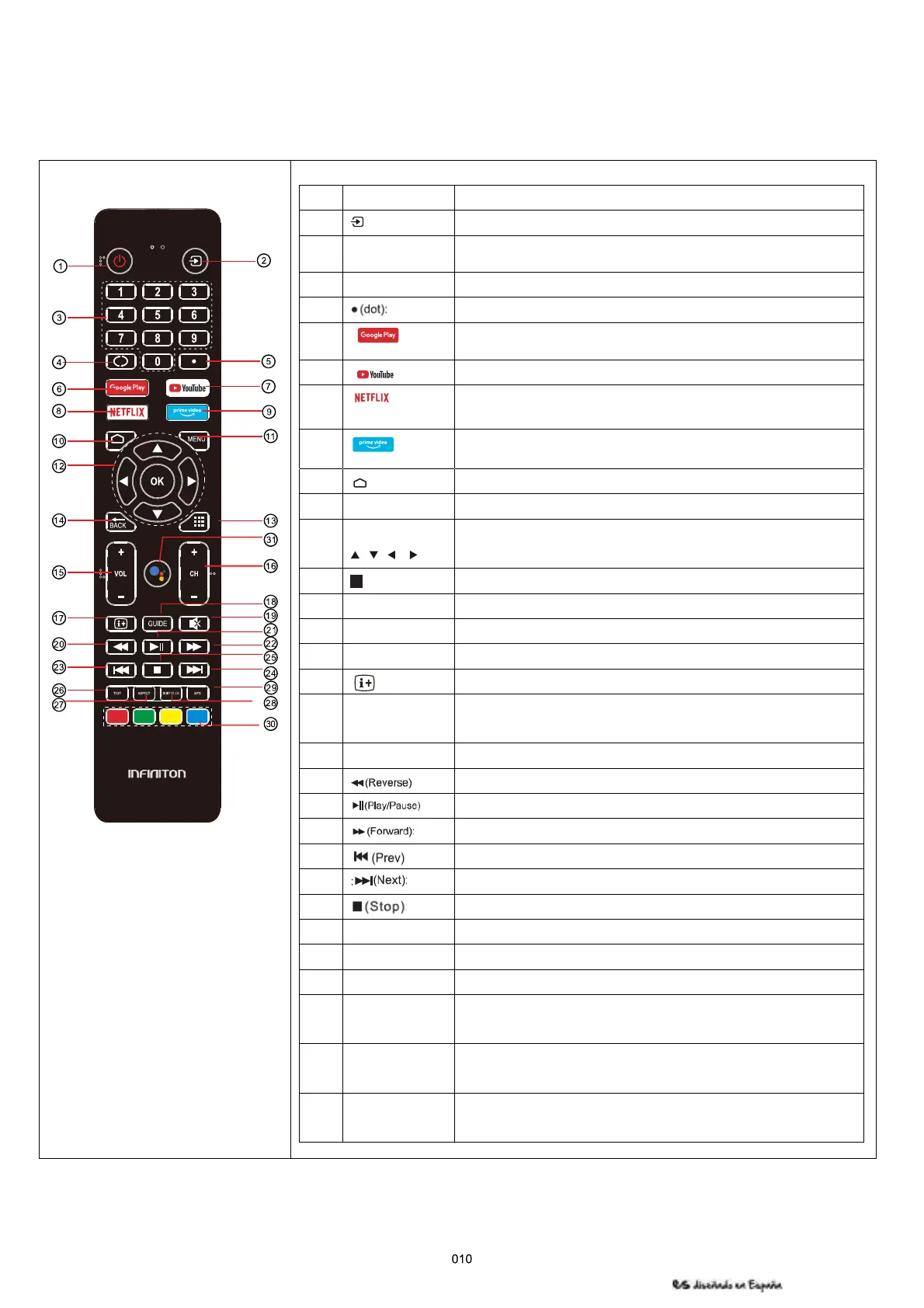 1 POWER Para configurar el televisor en los modos de espera o encendido.