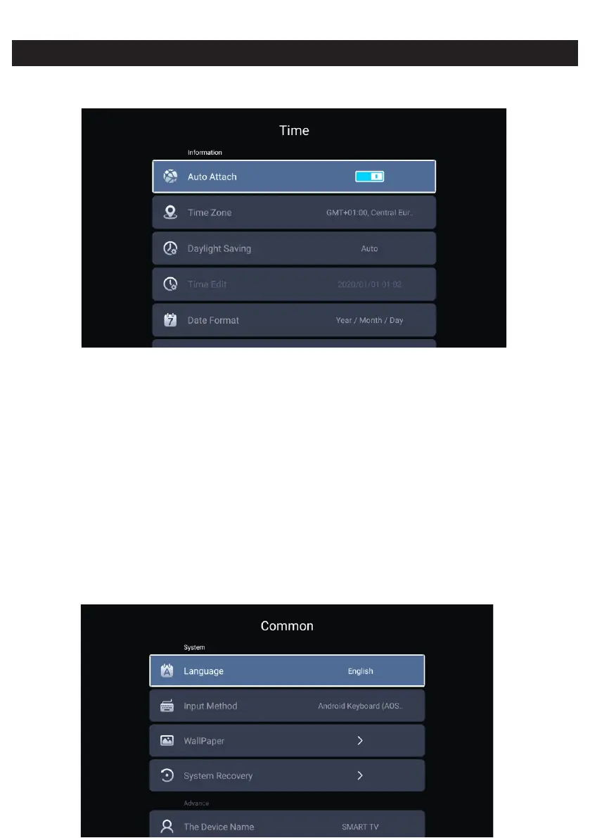 Presione el botón ▼ / ▲ para seleccionar Auto Attach / Time Zone / Daylight Saving / Time Edit / Date