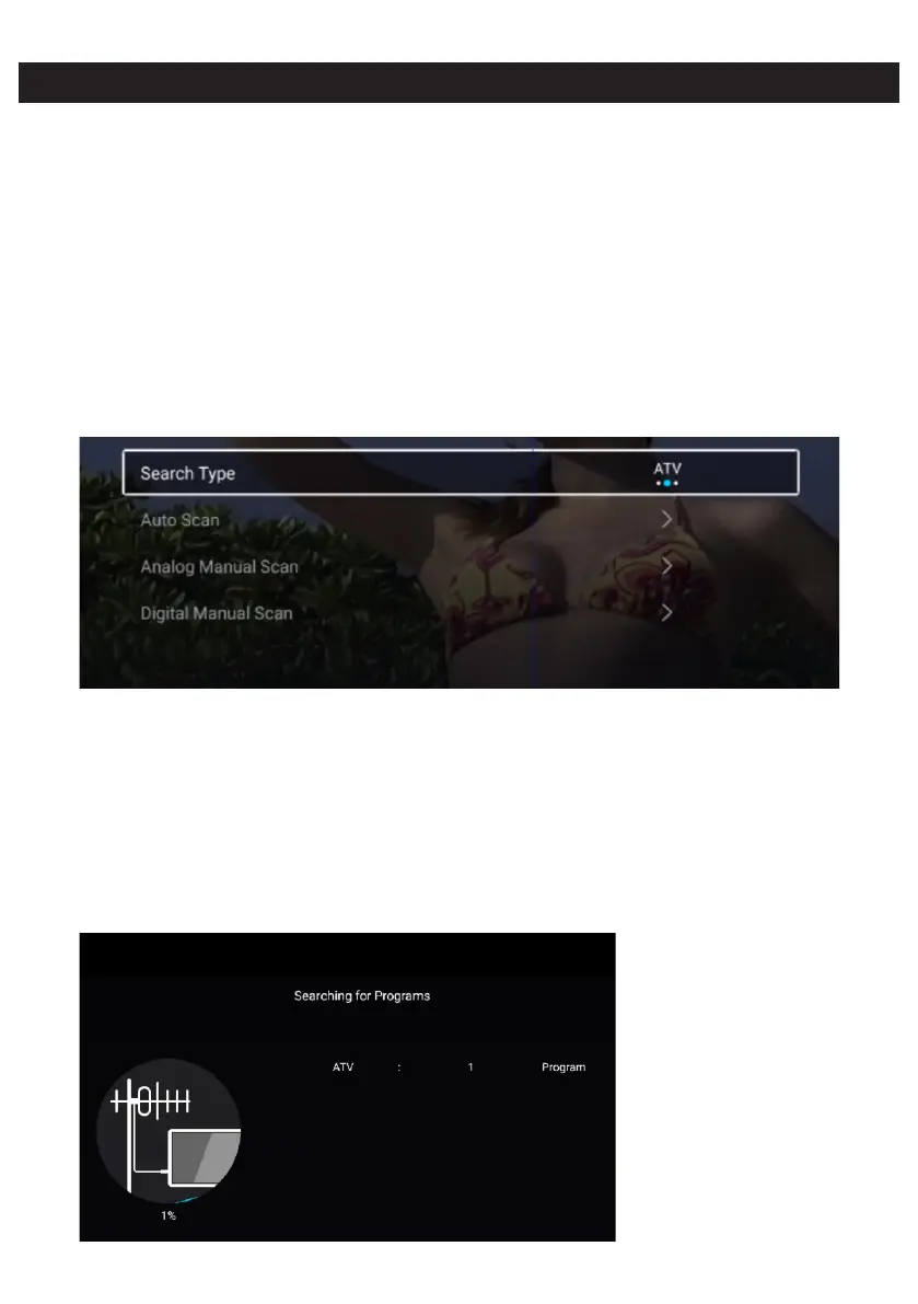 Presione el botón ▼ / ▲ para seleccionar Tipo de búsqueda / Exploración automática / Exploración manual