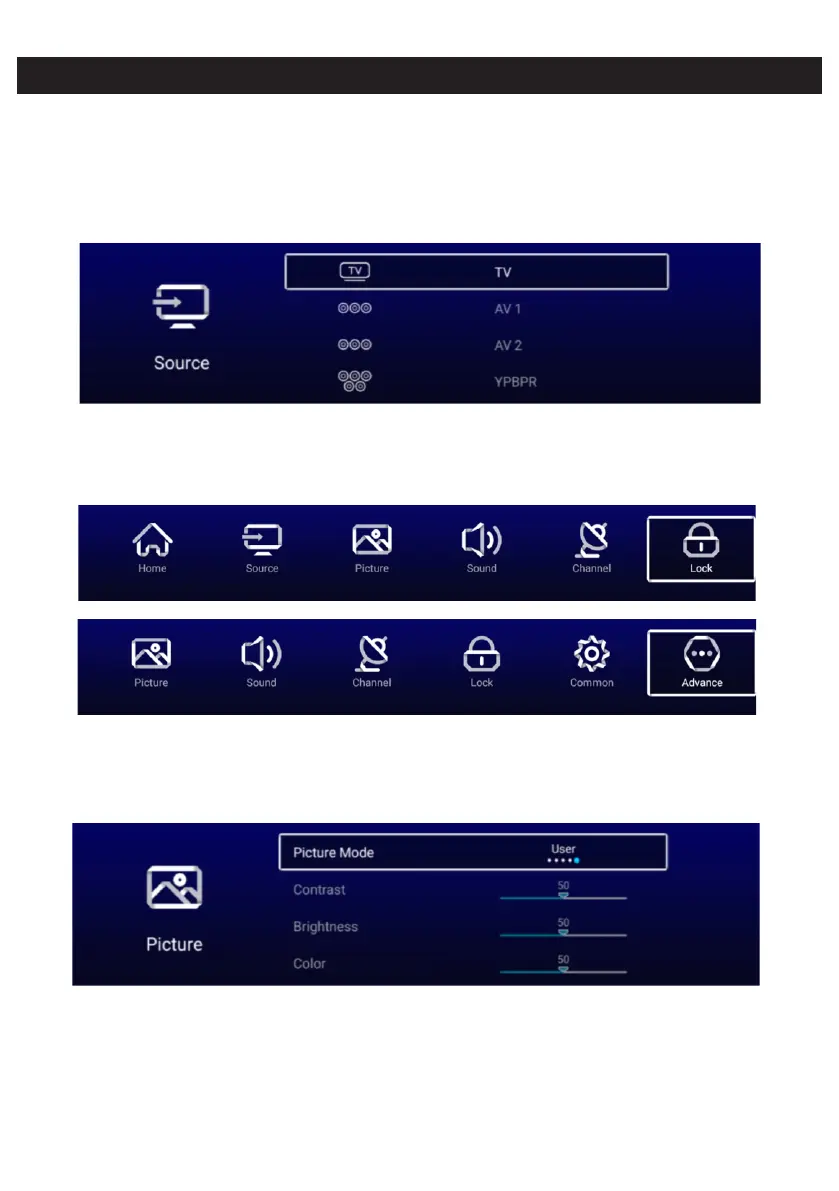 ( Optional:Home/Source/Picture/Sound/Channel/Lock/Common/Advance)