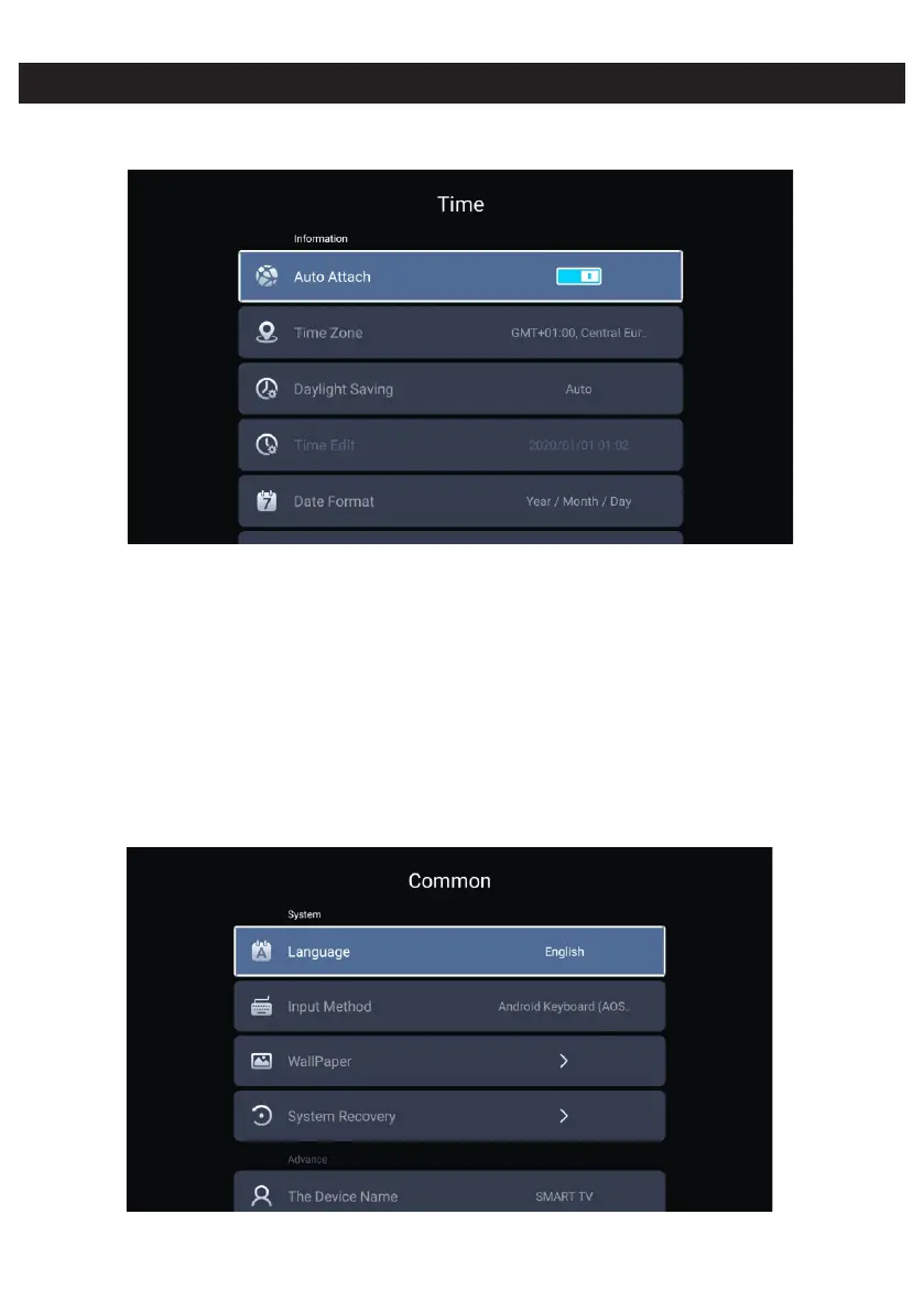 Pressione o botão ▼ / ▲ para selecionar Anexar automaticamente / Fuso horário / Horário de verão /