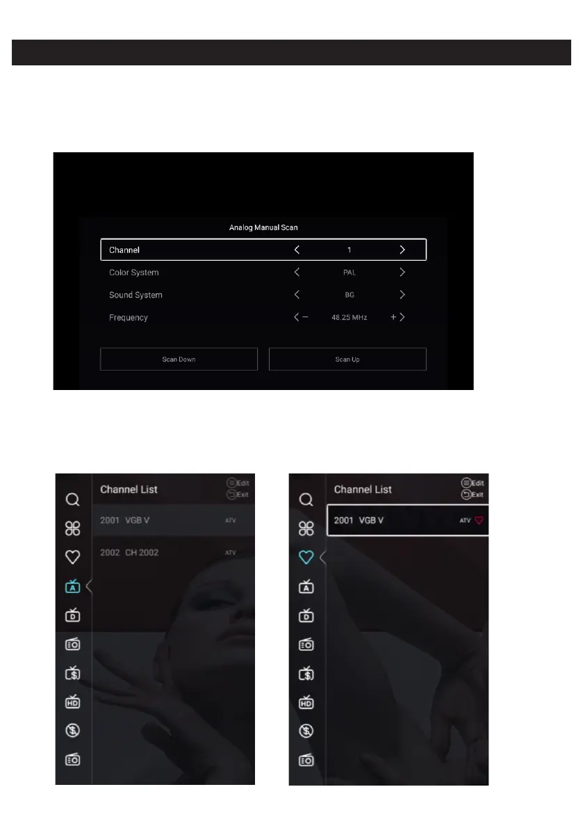 Pressione o botão ▼ / ▲ para selecionar Digital Analog Manual Scan e pressione o botão OK para