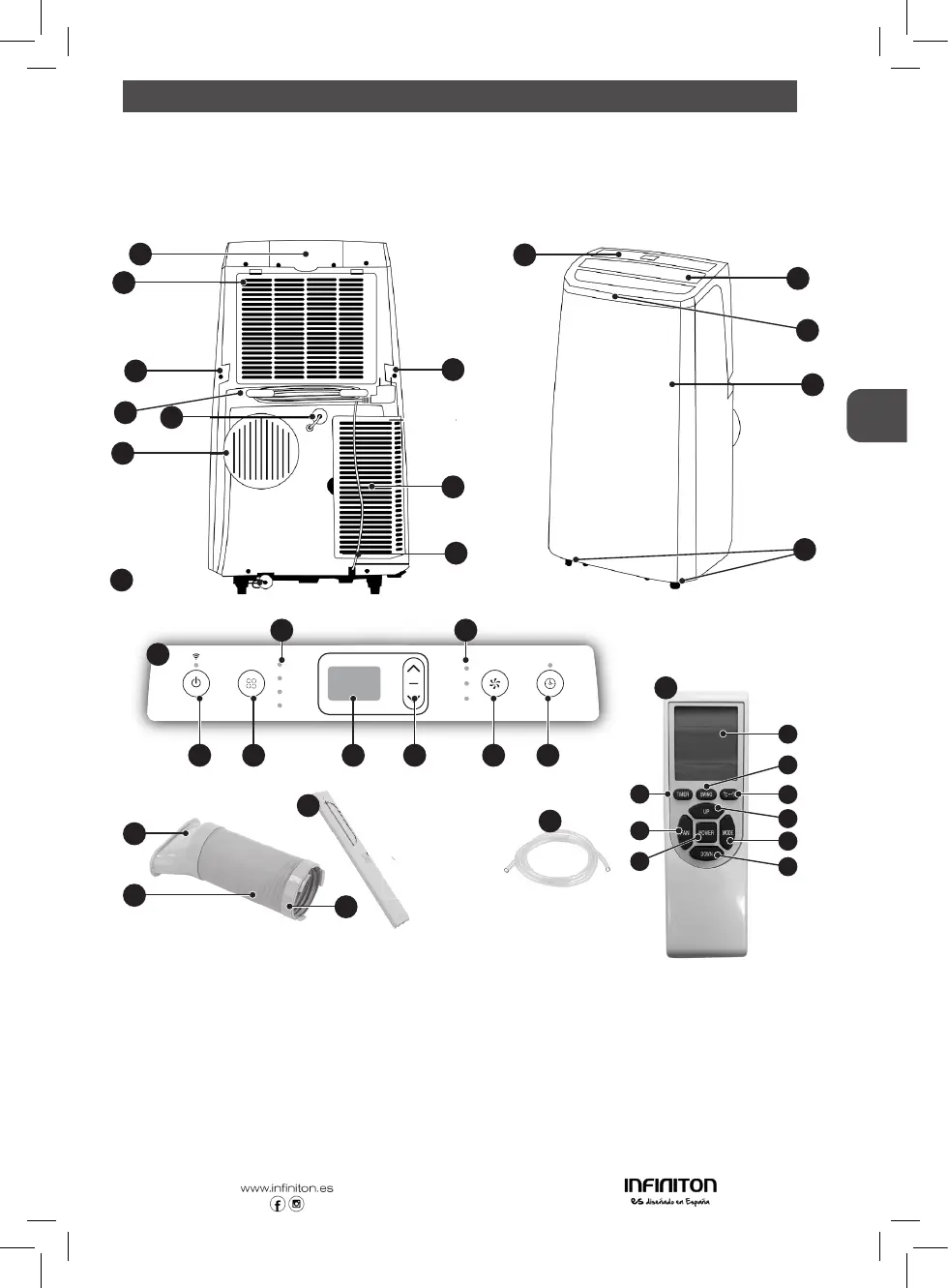 F. Indicadores LED COOL / FAN / DRY / HEAT.