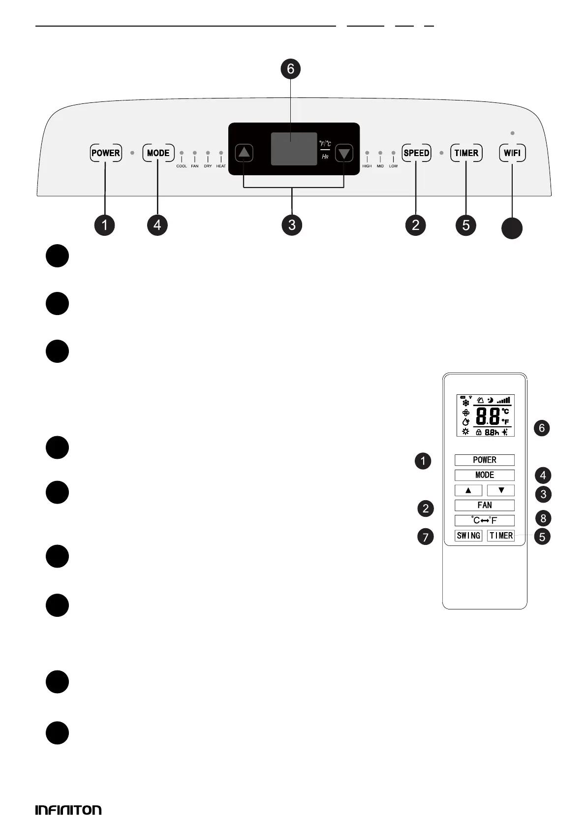 Press this button in cooling or heating mode to increase/decrease the