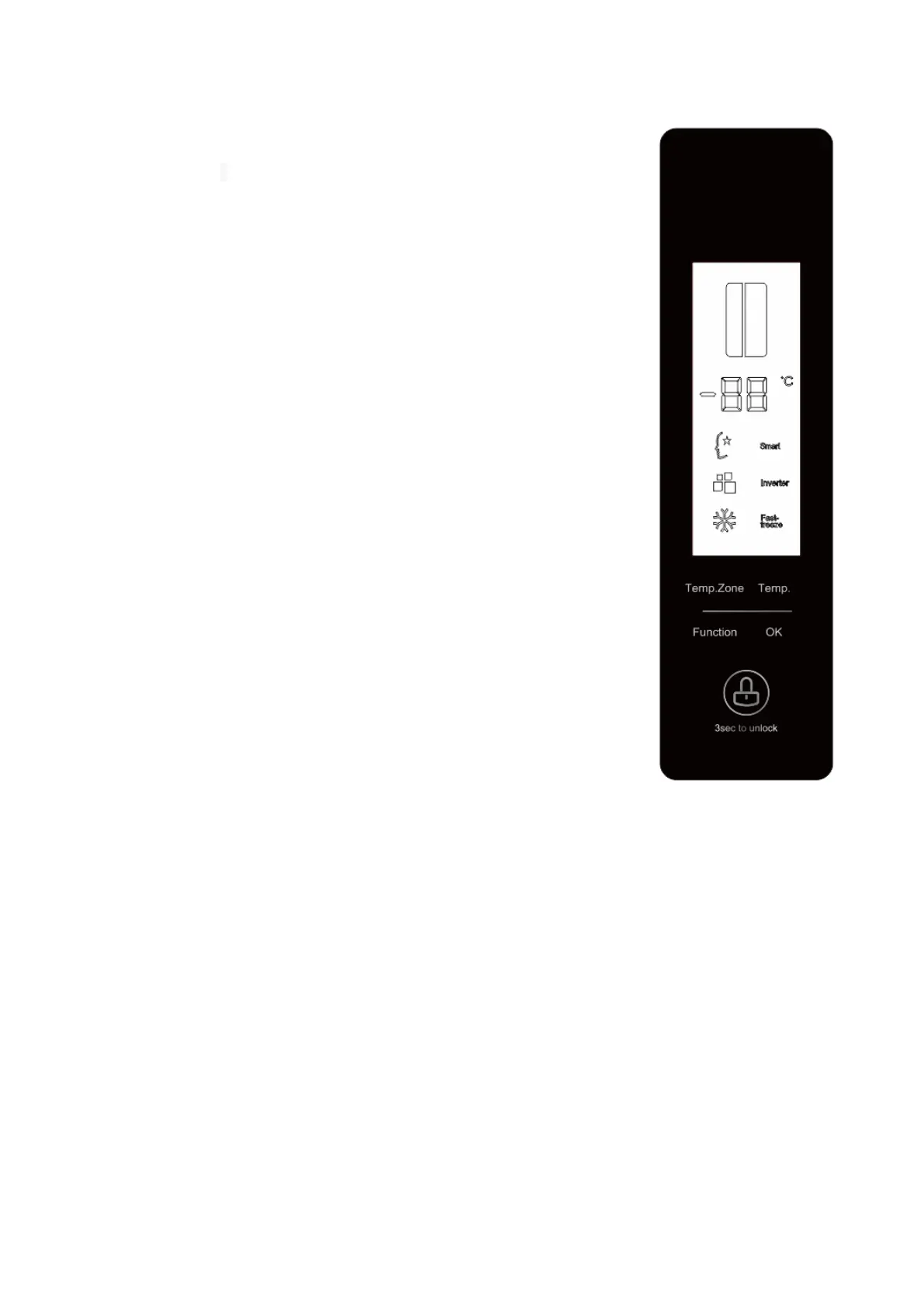 3.”Function”button-setting the refrigerator at fast freeze or Smart status
