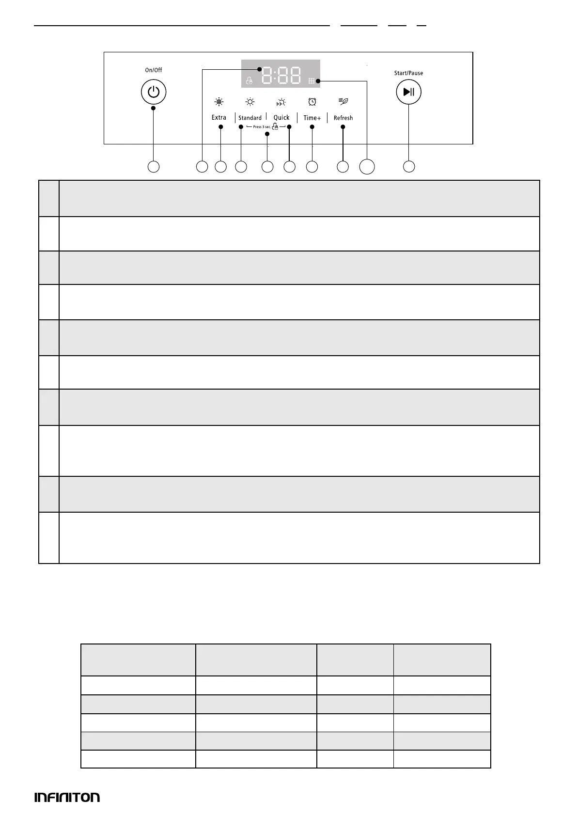 Filter cleaning reminder. At the end of the programme, this indicator lights up to remind the user