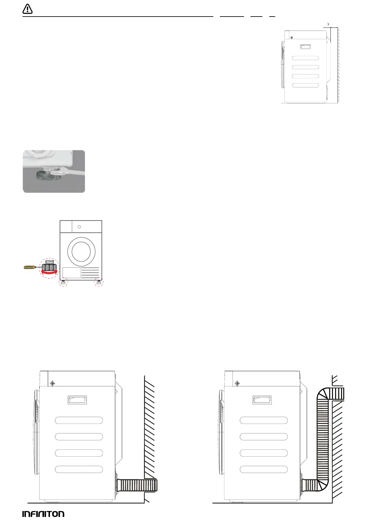The tumble dryer should be placed in a ventilated area at a distance of not less