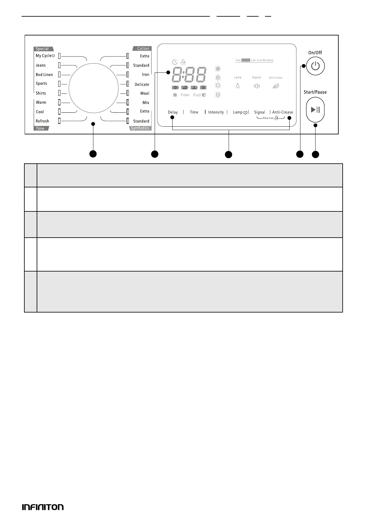 Different drying cycles can be selected according to the user’s needs and the type of laundry to