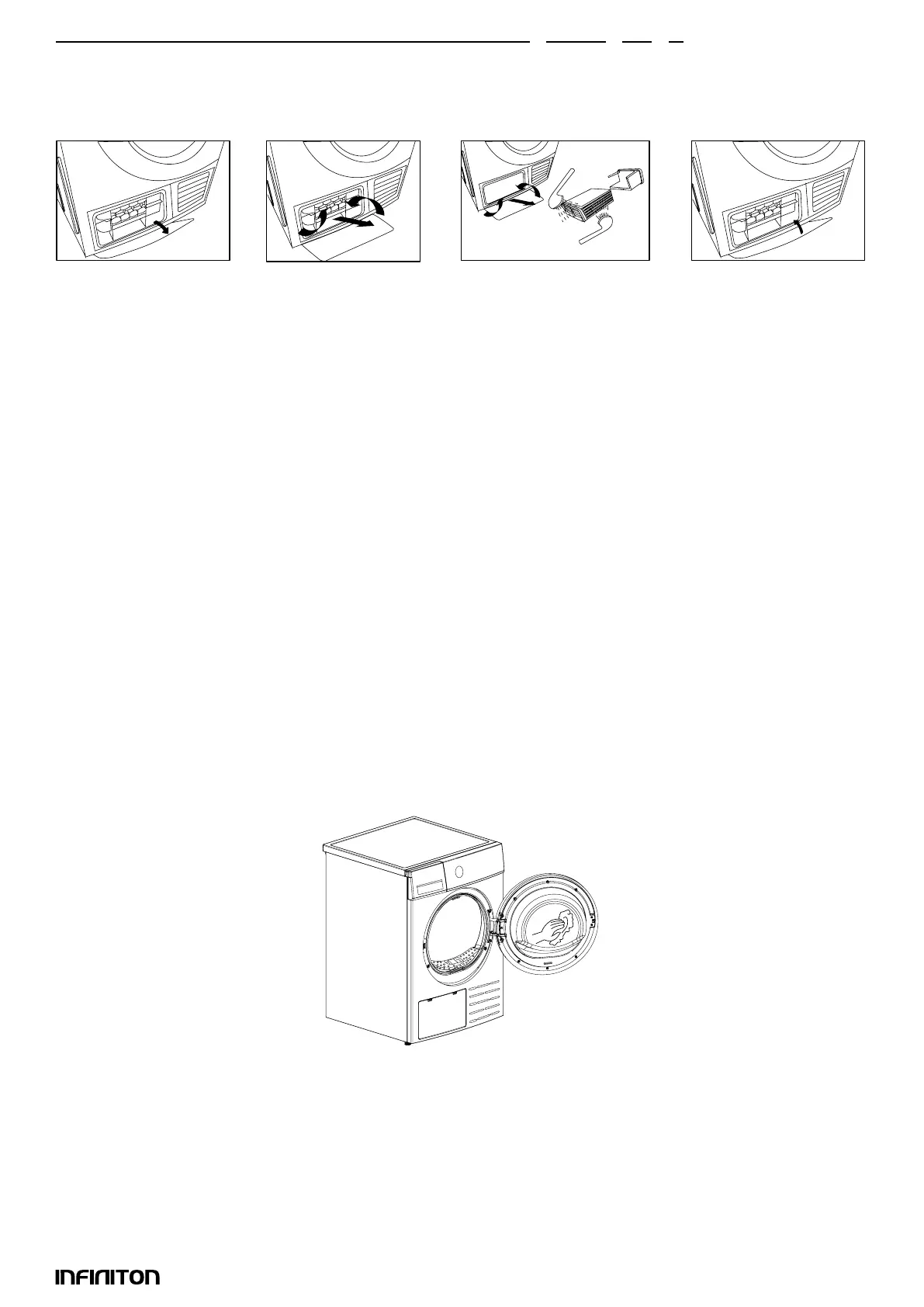 1. Open the cover and the lid on the bottom of the tumble dryer.