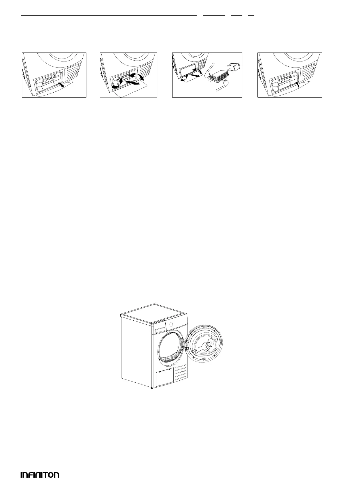 1. Abrir a tampa e a tampa da parte inferior da máquina de secar roupa.