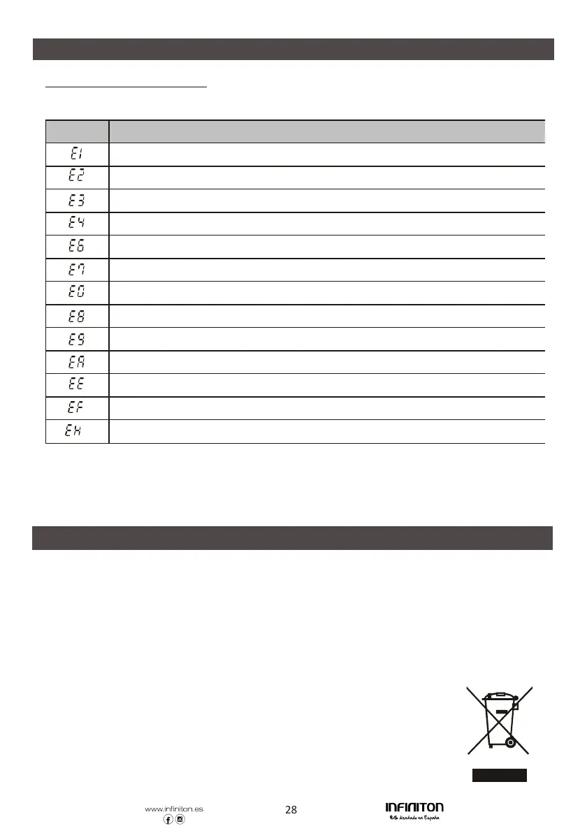 Em caso de erro, a visualização na unidade interior apresentava os seguintes códigos de erro: