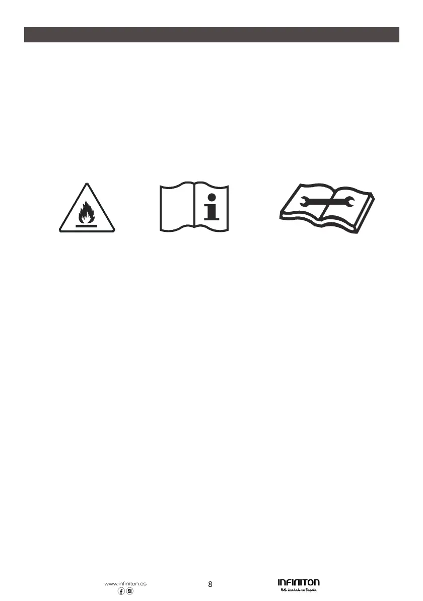 * El electrodoméstico debe almacenarse en una sala sin fuentes de ignición que funcionen