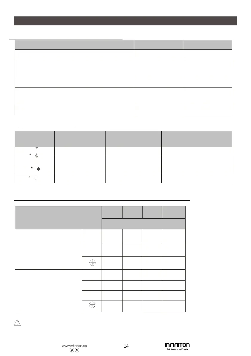 Nota: Esta tabla es sólo de referencia, la instalación debe cumplir con los requisitos de las leyes
