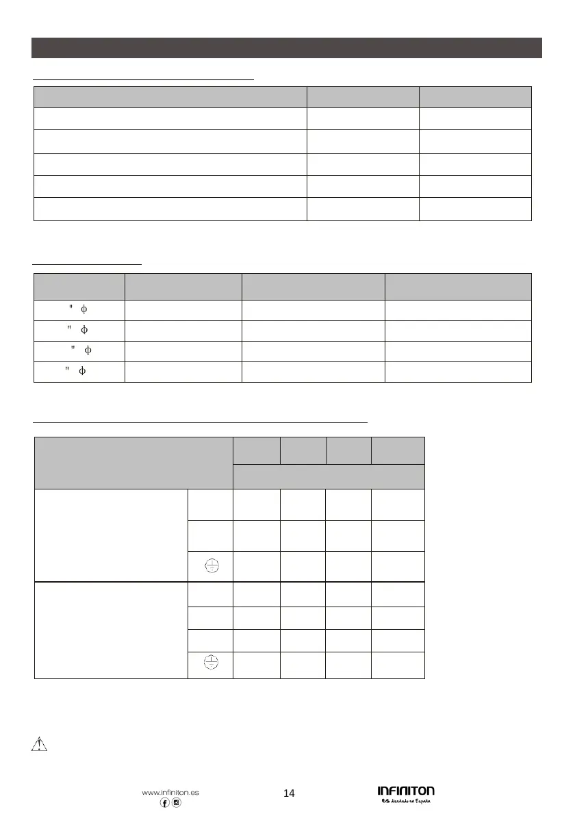 Note: This table is only for reference, the installation shall meet the requirements of local laws