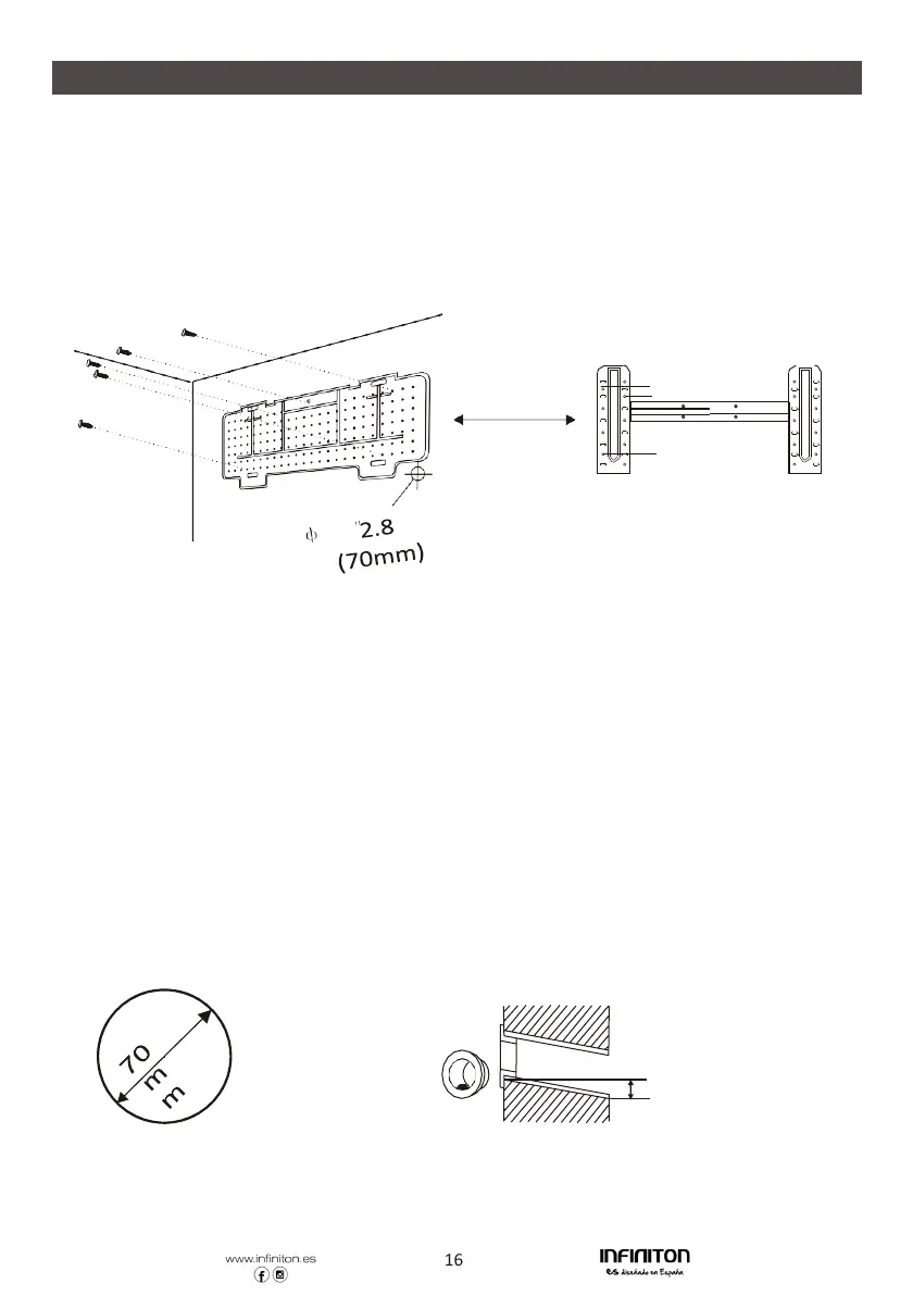 perto da parede. 2.13 Ajustar a placa de montagem a um estado horizontal com um nível de bolha de