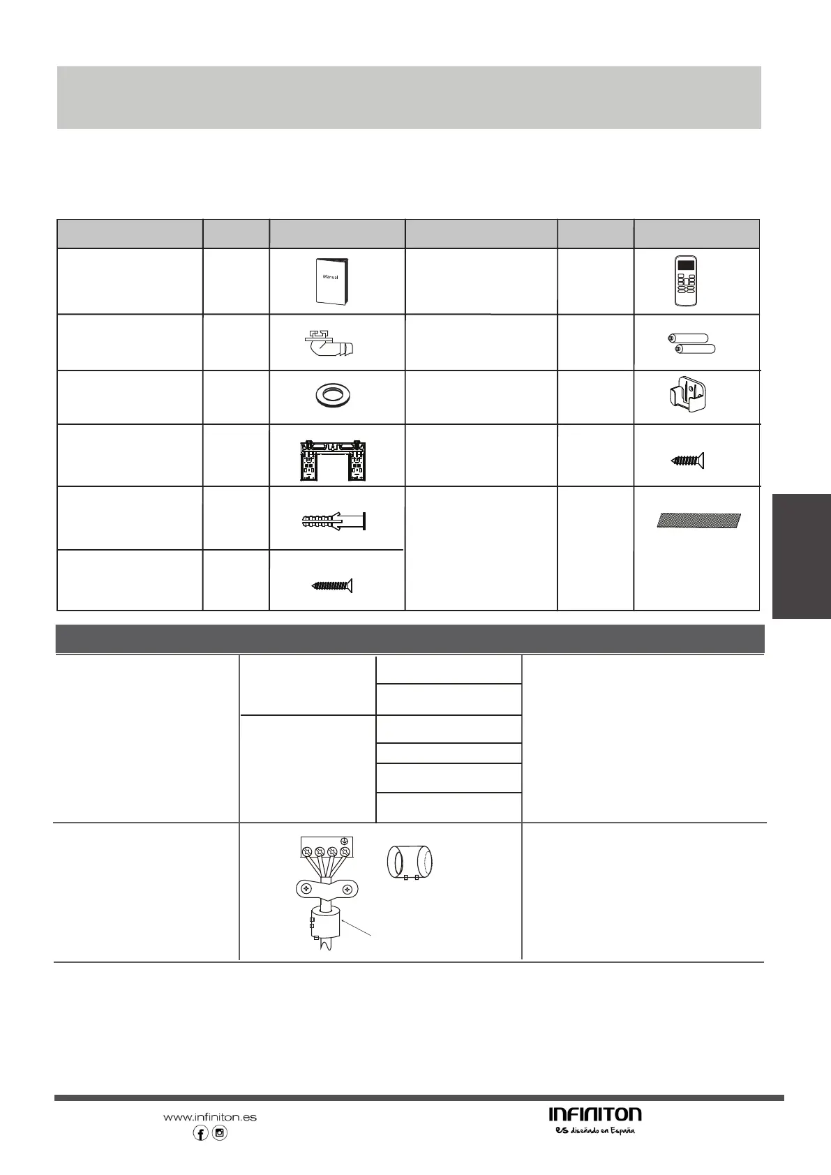 instalação e acessórios para instalar o ar condicionado. A instalação incorrecta pode resultar