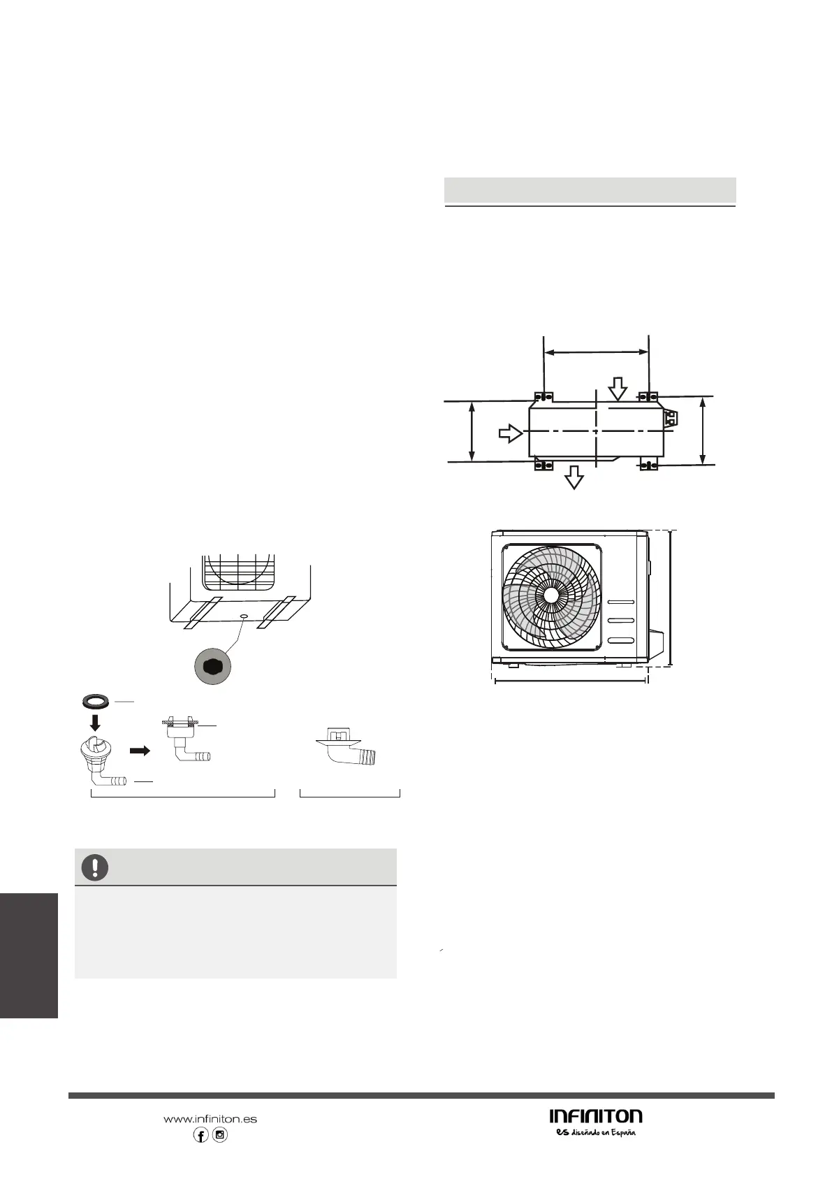 of the unit according to the dimensions below.
